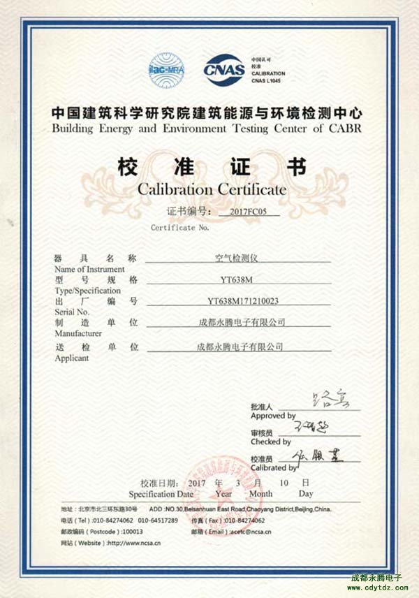 成都永騰電子PM2.5檢測儀檢驗報告